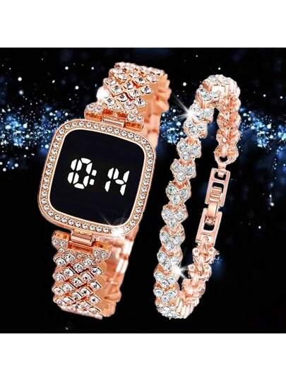 مجموعة ساعات رقمية جديدة مجانية بسوار مربع LED للسيدات من سبائك معدني للفتيات الطالبات ساعة إلكترونية أنيقة تعمل باللمس [صندوق مجاني]