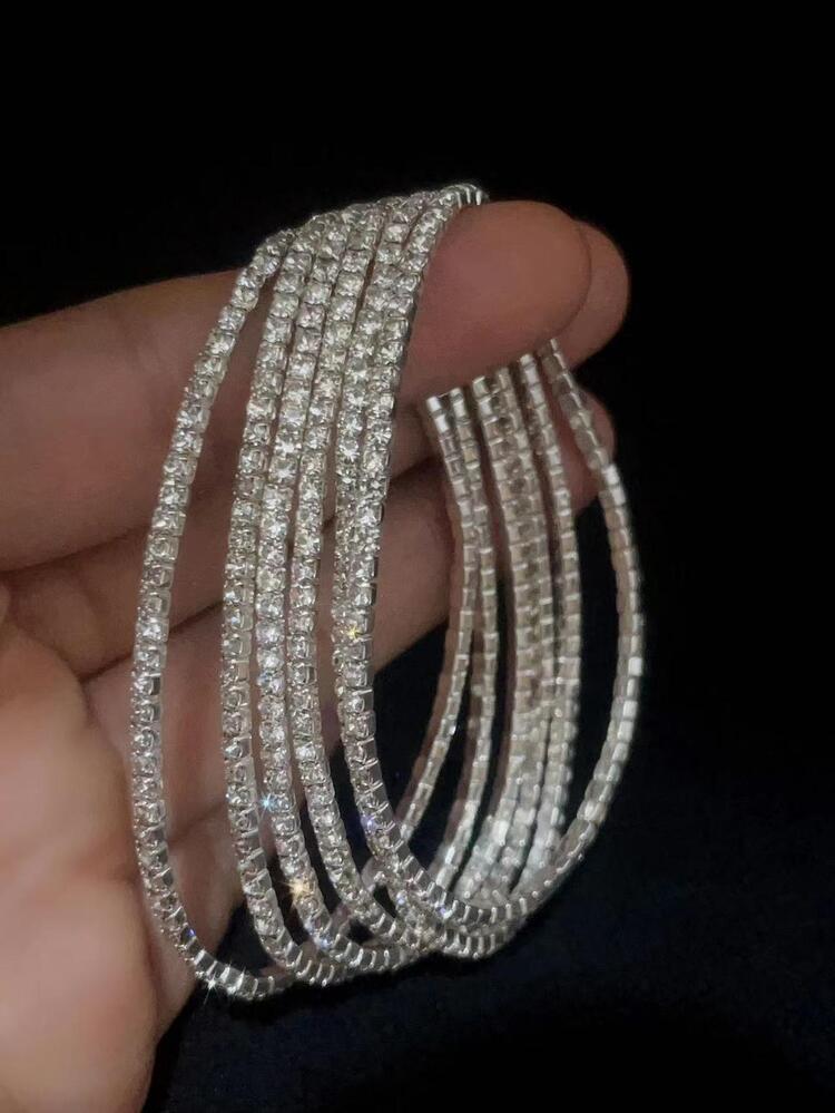 مناسبة: براقةعنصر: حجر الراينتفاصيل: حجر الراينتصاميم: كاجوالالنوع (ذكر، أنثى): سيدةلون: فضيالمواد: نحاس